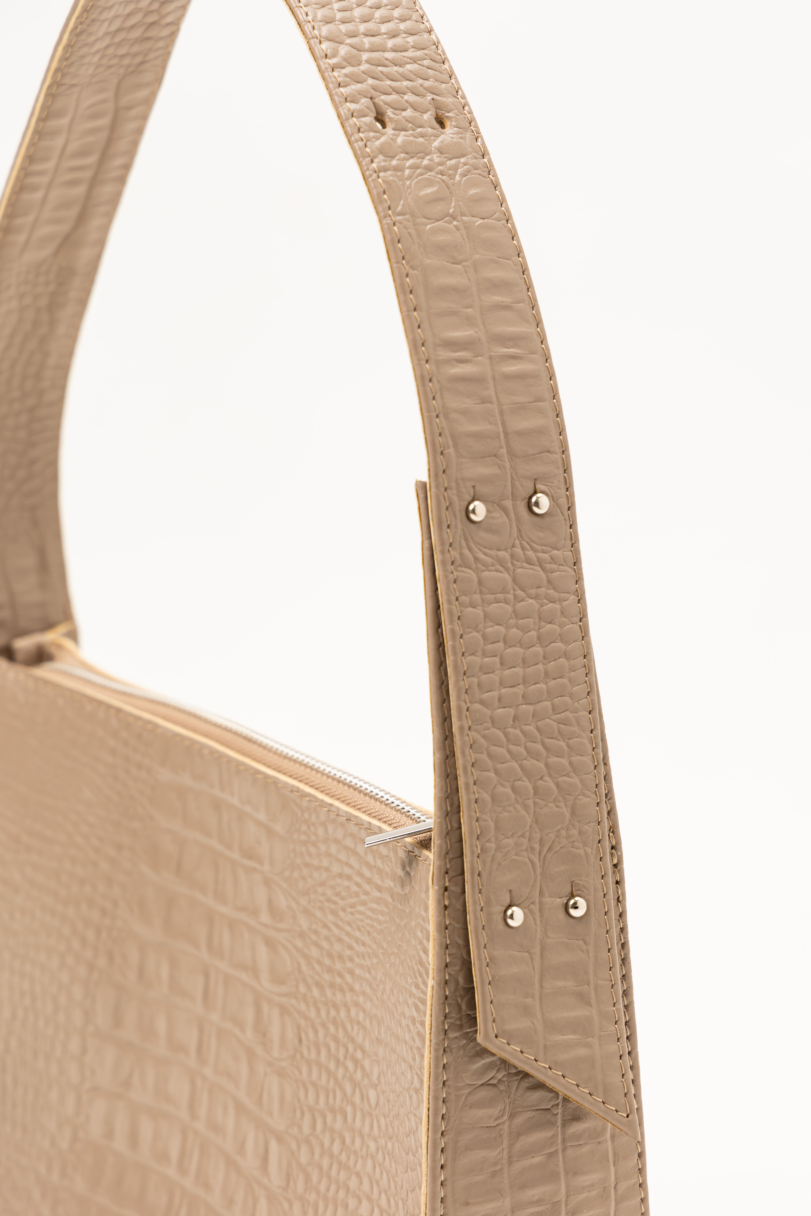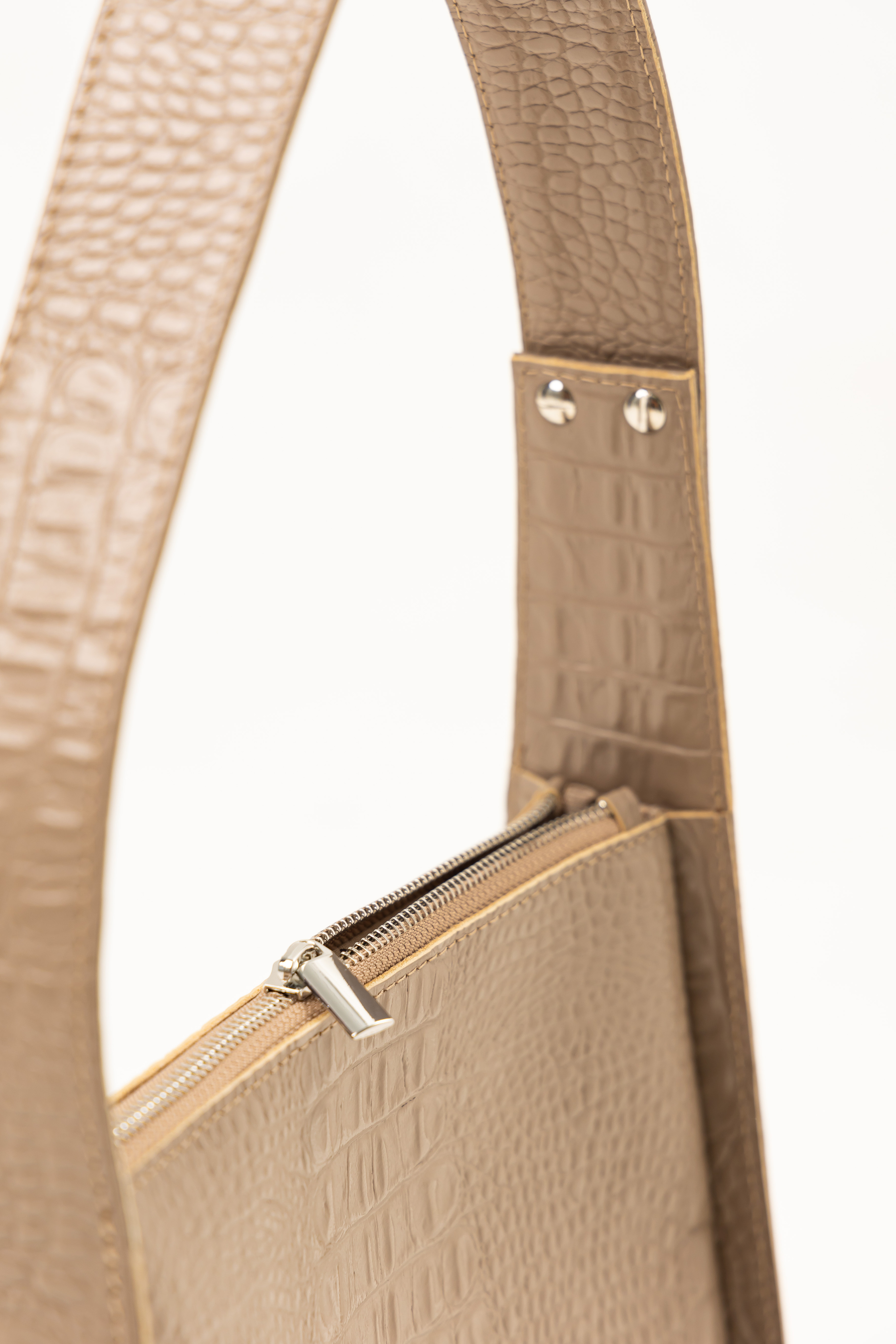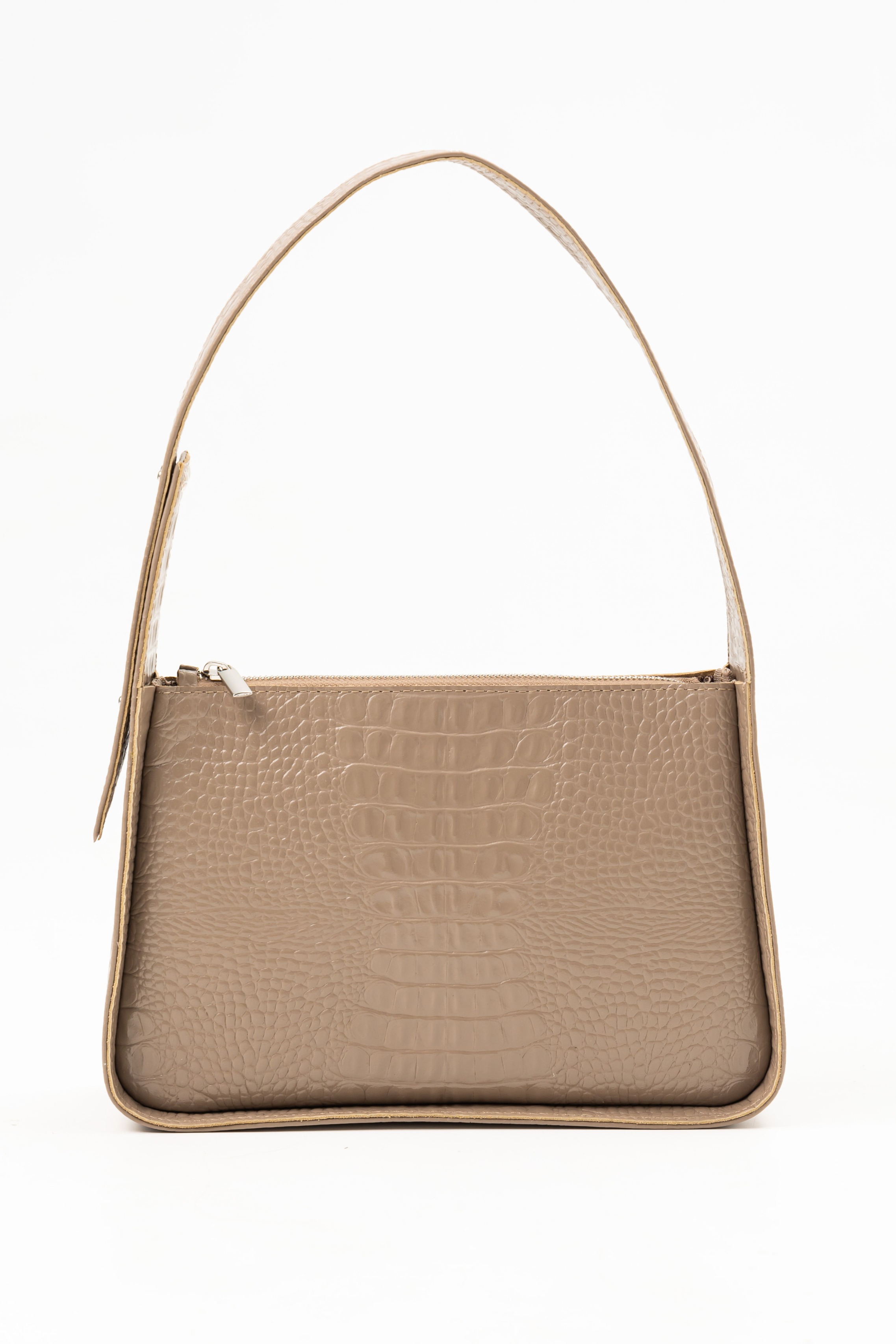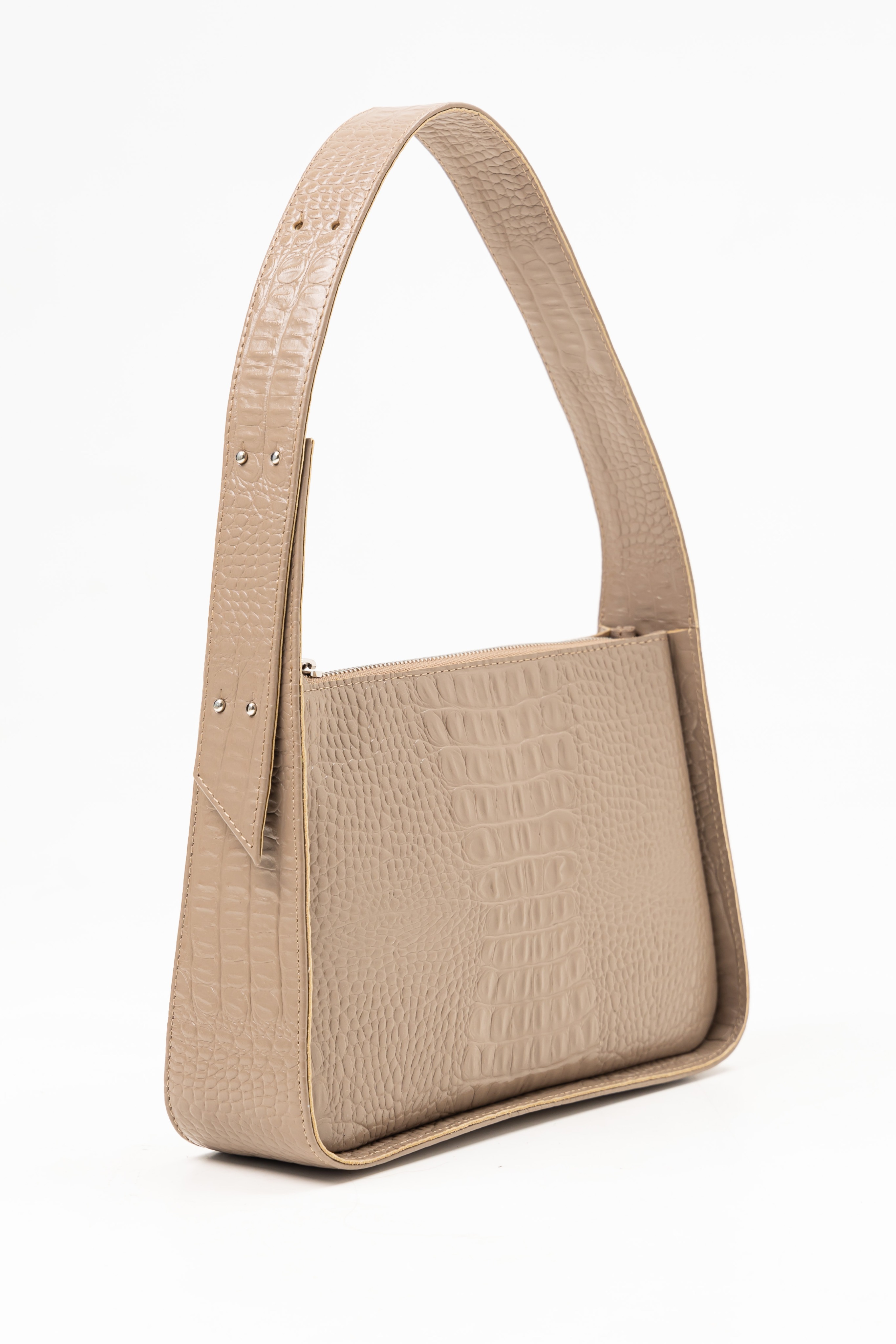 Миниатюрная кожаная на руку, выполненная в светлом бежевом цвете мокко, сочетает в себе стиль и практичность. Багет винтажного дизайна и аккуратные линии придают особый шарм, соответствующий трендам. Изящный съемный ремень позволяют носить её на и через плечо, обеспечивая удобство в любой ситуации. Вместительная вечерняя среднего размера с изысканными ручками подойдёт для повседневных прогулок или торжественных мероприятий, подчеркивая ваш индивидуальный вкус и принадлежность к брендам высокого класса.