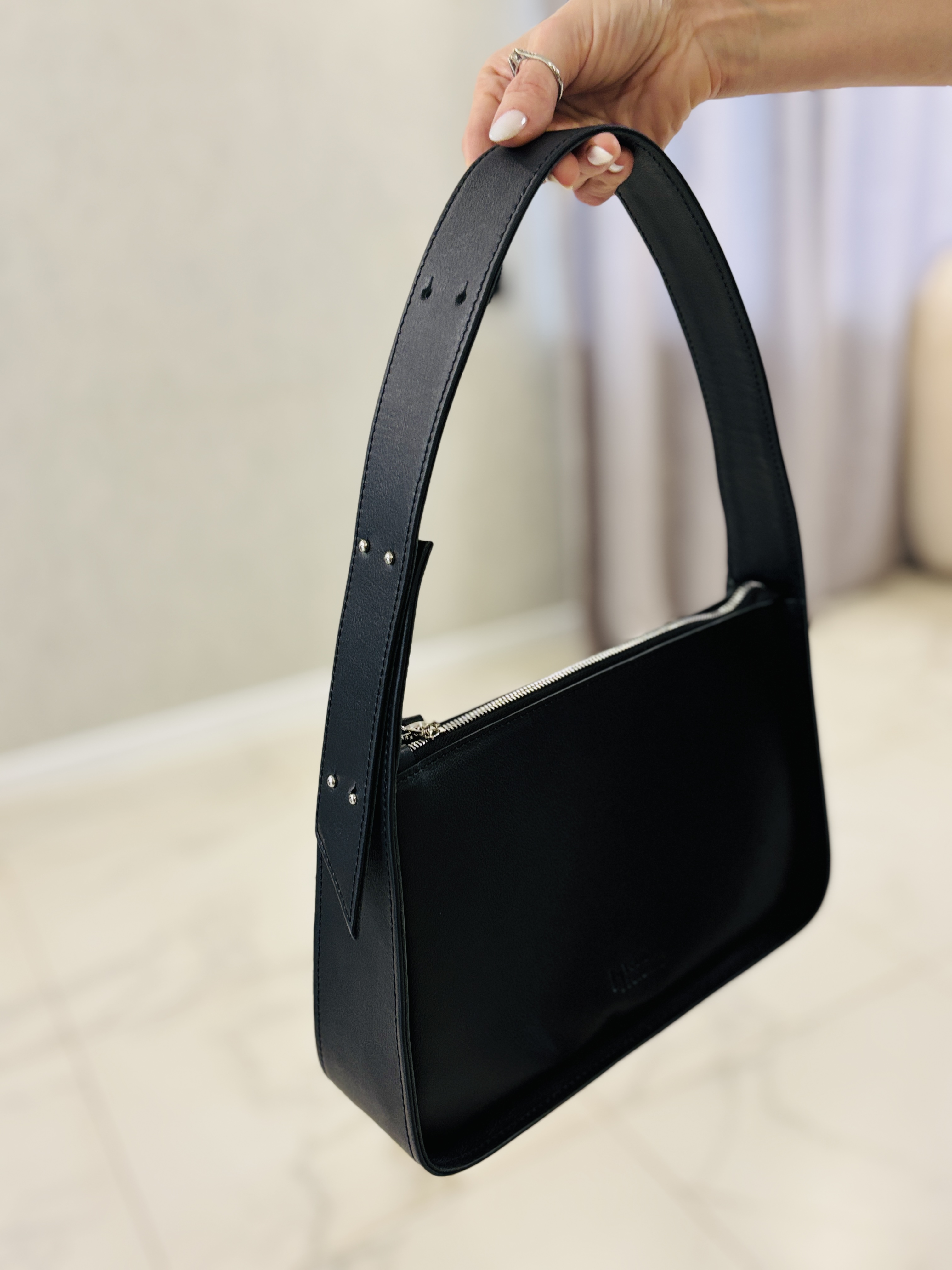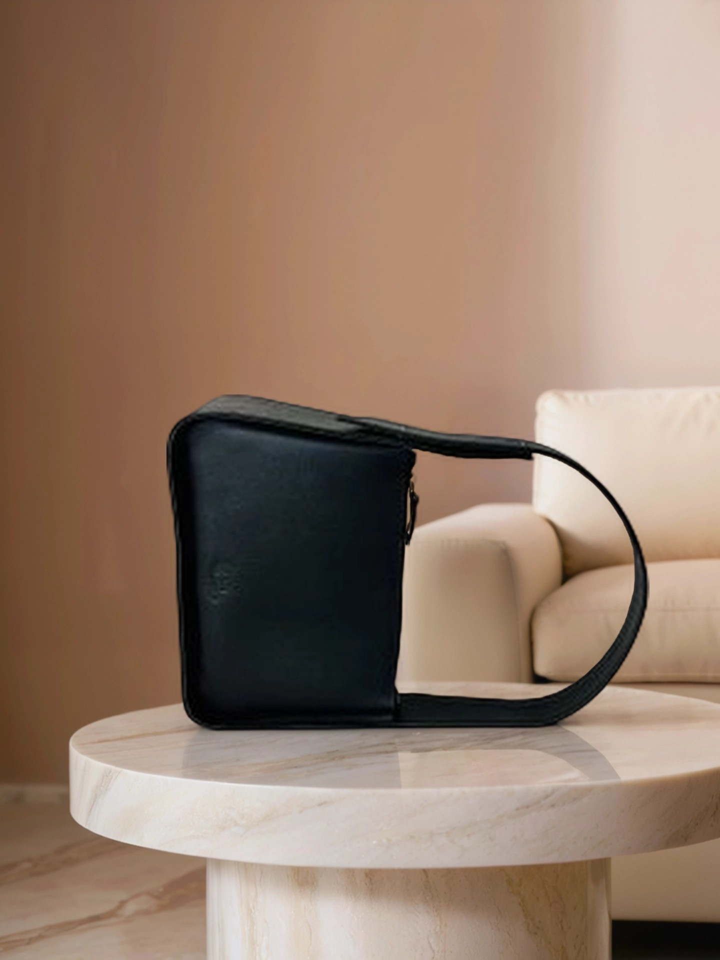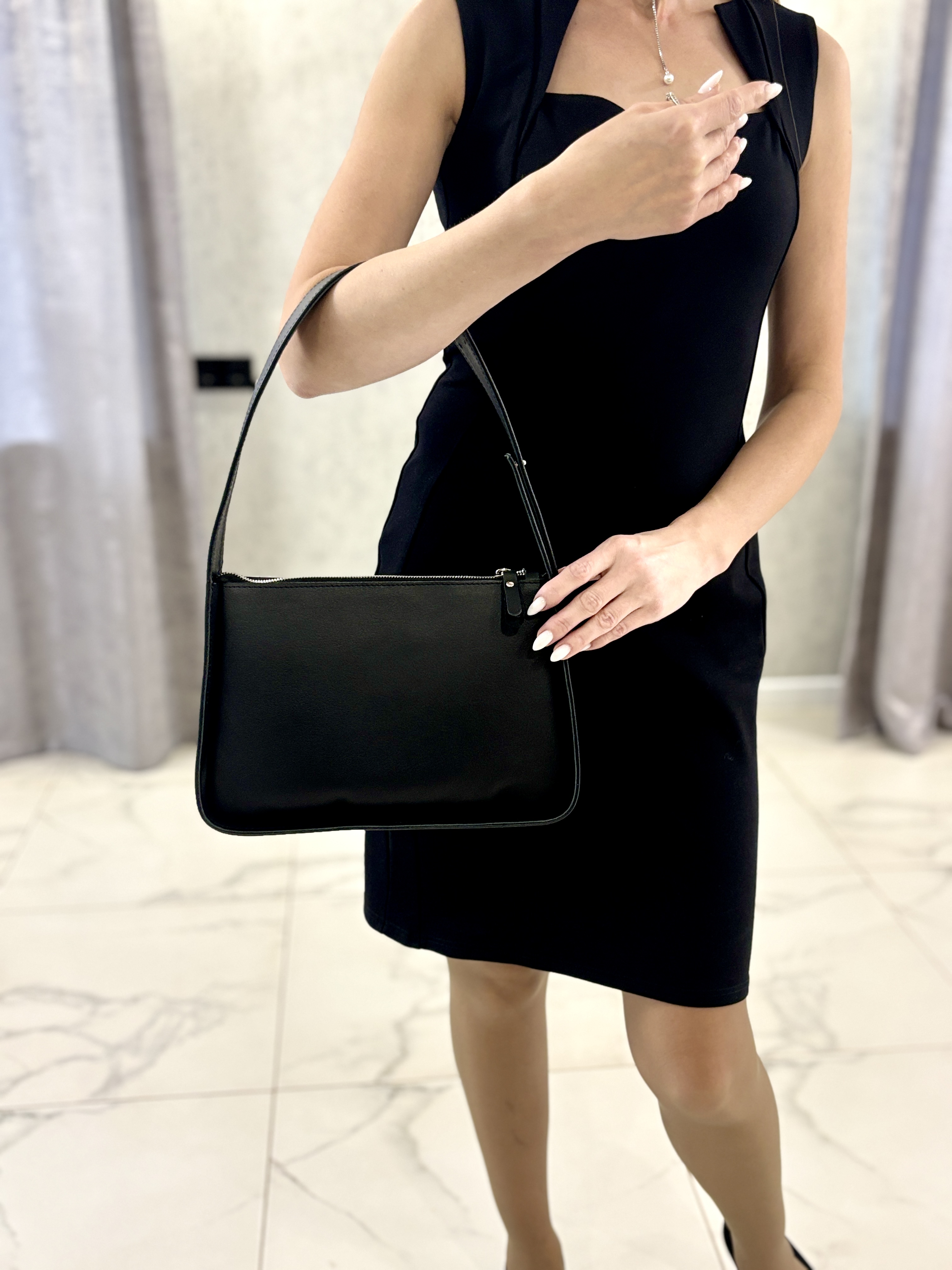 Миниатюрная кожаная на руку, выполненная в благородном черном цвете, сочетает в себе стиль и практичность. Багет винтажного дизайна и аккуратные линии придают особый шарм, соответствующий трендам. Изящный съемный ремень позволяют носить её на и через плечо, обеспечивая удобство в любой ситуации. Вместительная вечерняя среднего размера с изысканными ручками подойдёт для повседневных прогулок или торжественных мероприятий, подчеркивая ваш индивидуальный вкус и принадлежность к оригинальным брендам высокого класса. Подходит для документов а5 и планшет. Элегантное хобо держит форму и не теряет качество кожи весной и летом.