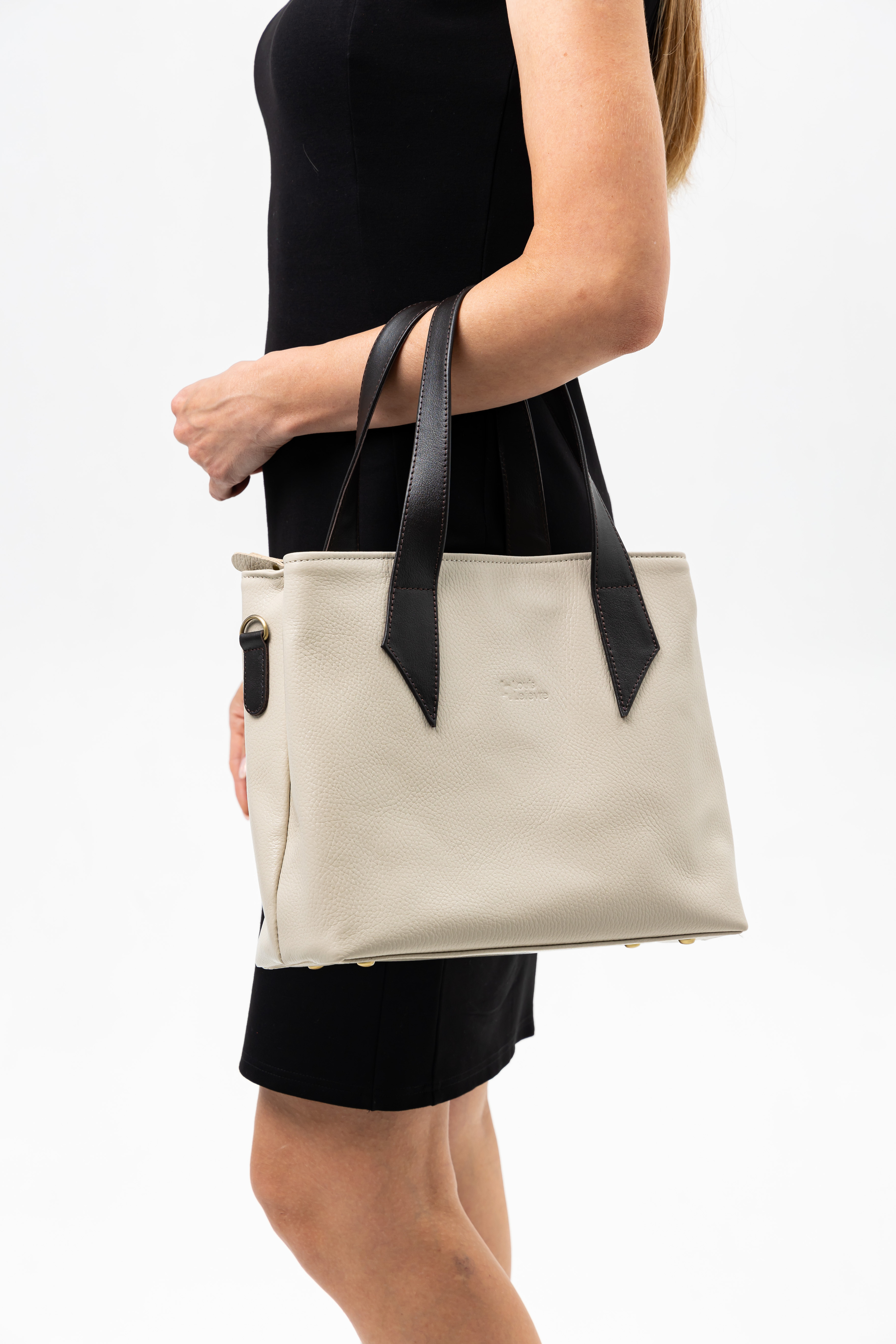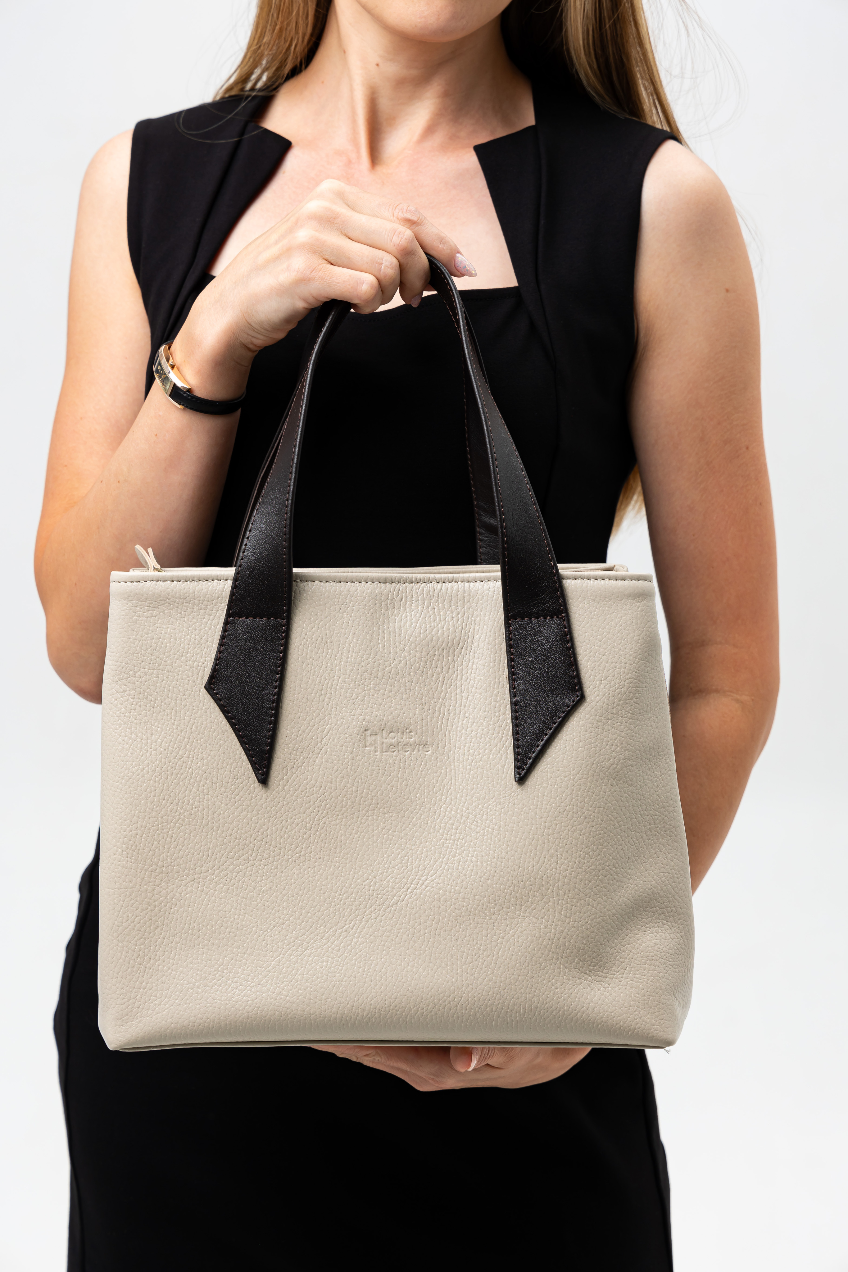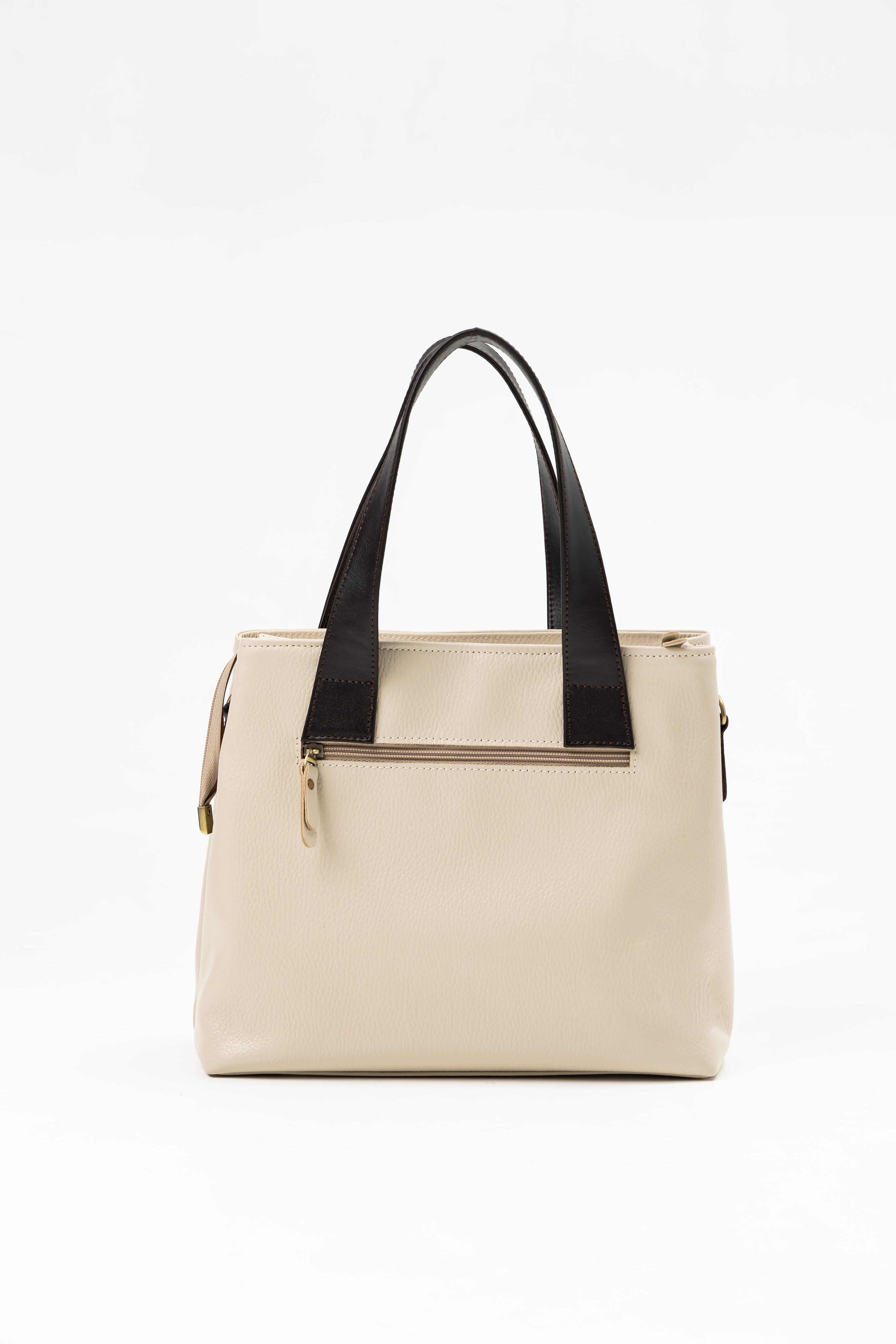 Эта шопер-сумка выполнена из высококачественной натуральной бежевой кожи флотер с темными коричневыми ручками и съемным ремнем из натуральной кожи тип "орфей" , что придает ей изысканный винтажный вид. Вместительная большая идеально подходит для документов формата А4 и легко вмещает ноутбук. С дизайном, шоппер оснащен двумя удобными ручками для ношения через и на плечо или на руку, что создает её универсальной для любых ситуаций — городские прогулки и посещение колледжа или работы.