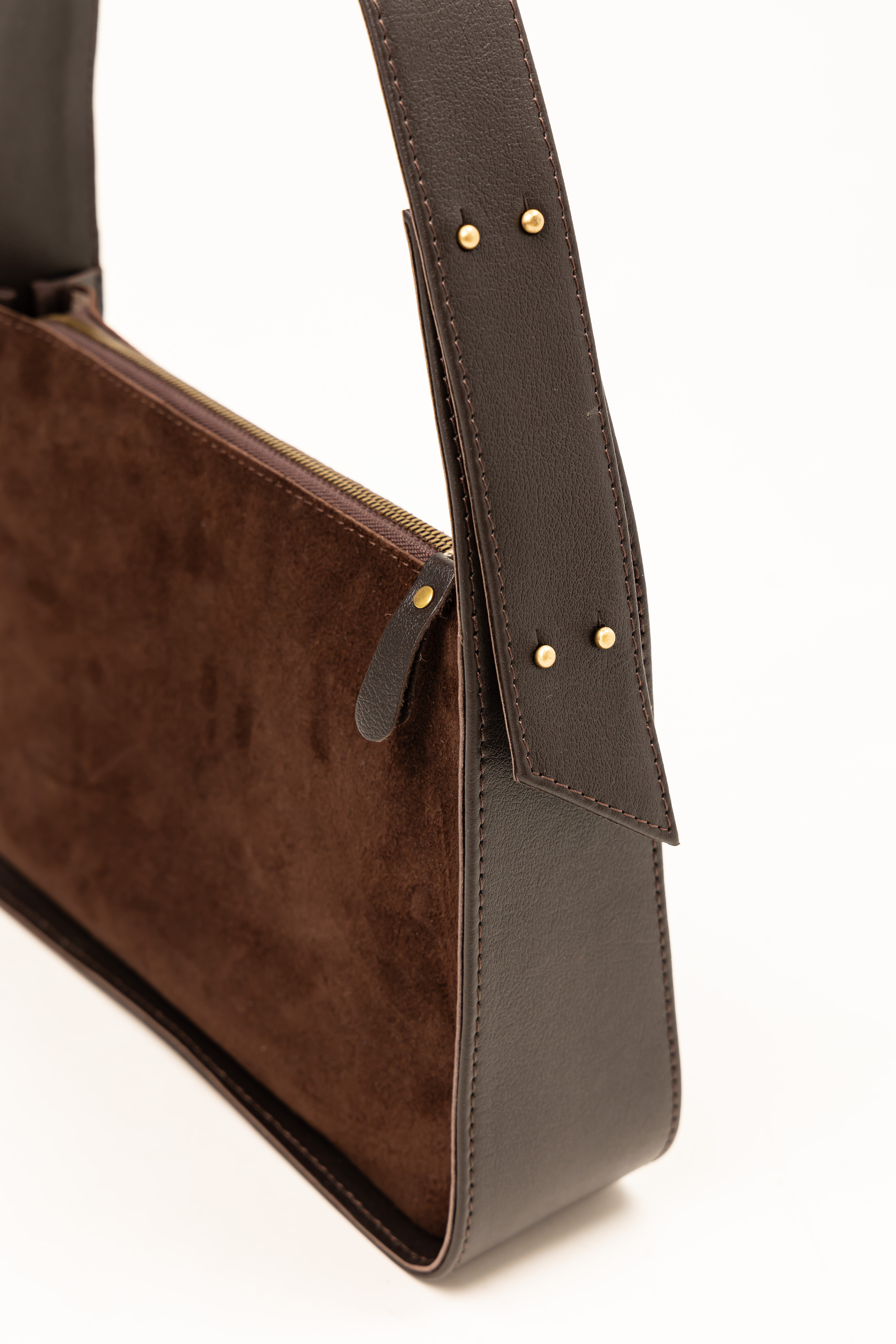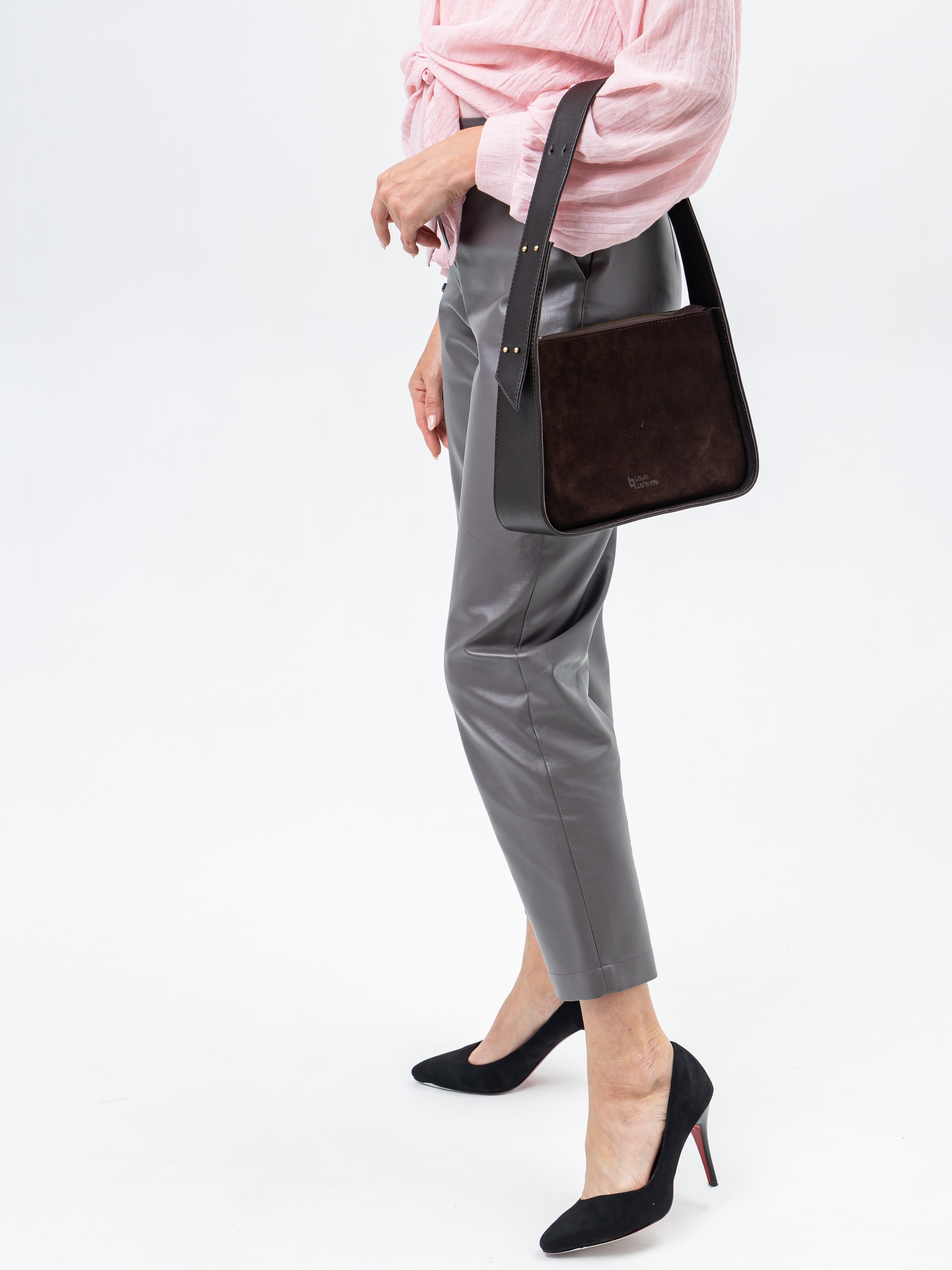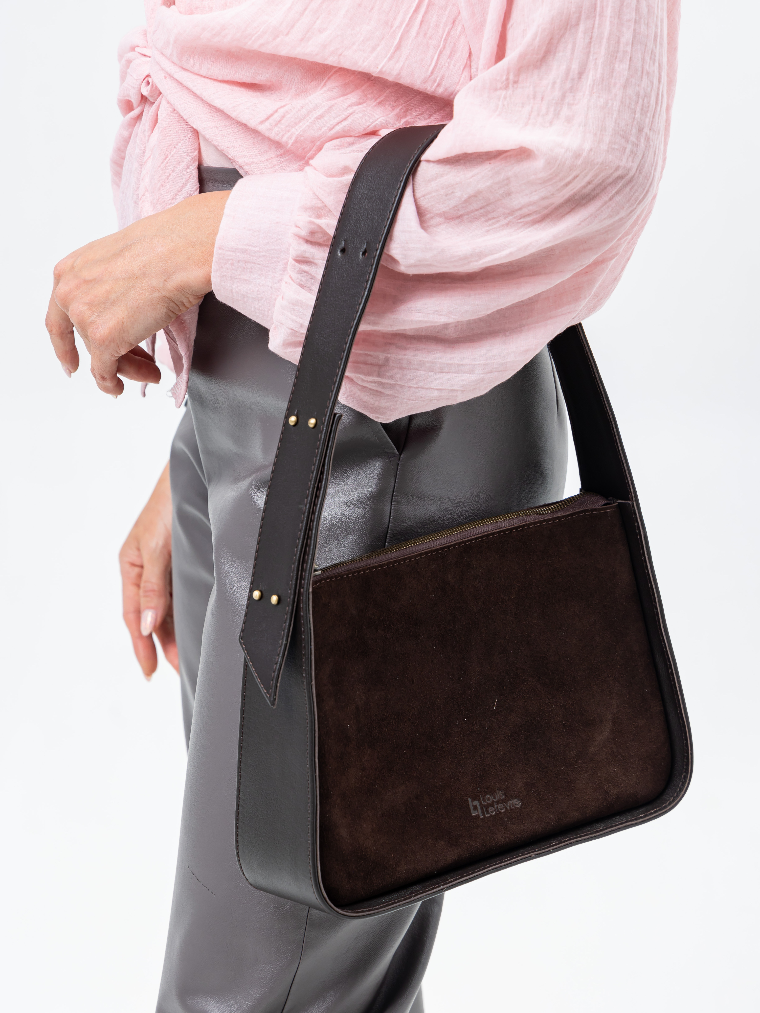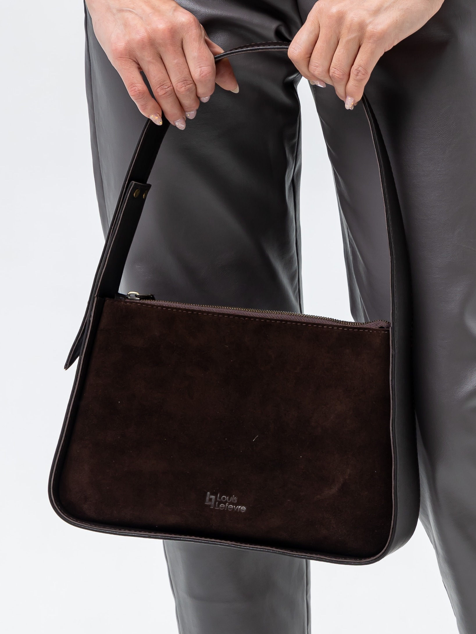 Представляем трендовый аксессуар на распродаже — женскую сумку натуральная кожа через плечо кросс боди среднего размера от Louis Lefevre. Изделие выполнено из премиального велюра (высококачественная замша) с кожаными элементами. Модная коричневая расцветка и формат багет соответствуют тренду 2026г.