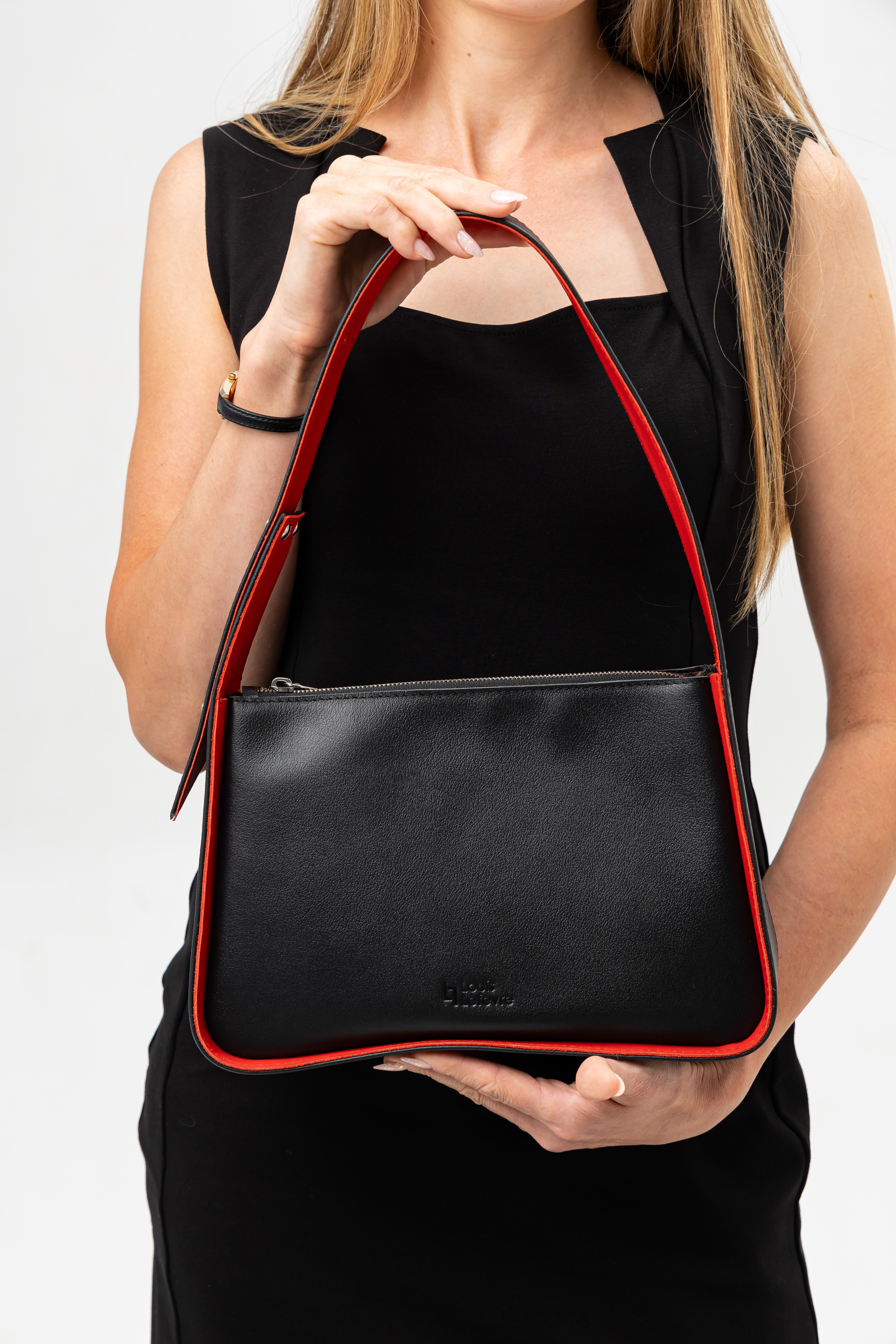 Миниатюрная кожаная на руку, выполненная в благородном темном черном цвете, сочетает в себе стиль и практичность. Багет винтажного дизайна и аккуратные линии придают особый шарм, соответствующий трендам. Изящный съемный ремень позволяют носить её на и через плечо, обеспечивая удобство в любой ситуации. Вместительная хобо вечерняя среднего размера с изысканными красными ручками подойдёт для повседневных прогулок или торжественных мероприятий, подчеркивая ваш индивидуальный вкус и принадлежность к брендам высокого класса.
